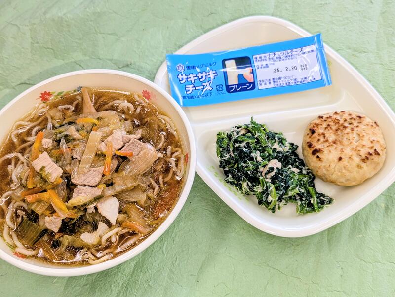 12月8日(月) 投稿日時 : 12/08 学校管理者 醤油ラーメン,和風きんぴら包み焼、ほうれん草のツナあえ、サキサキチーズ(674kcal) 0 {{options.likeCount}} {{options.likeCount}}