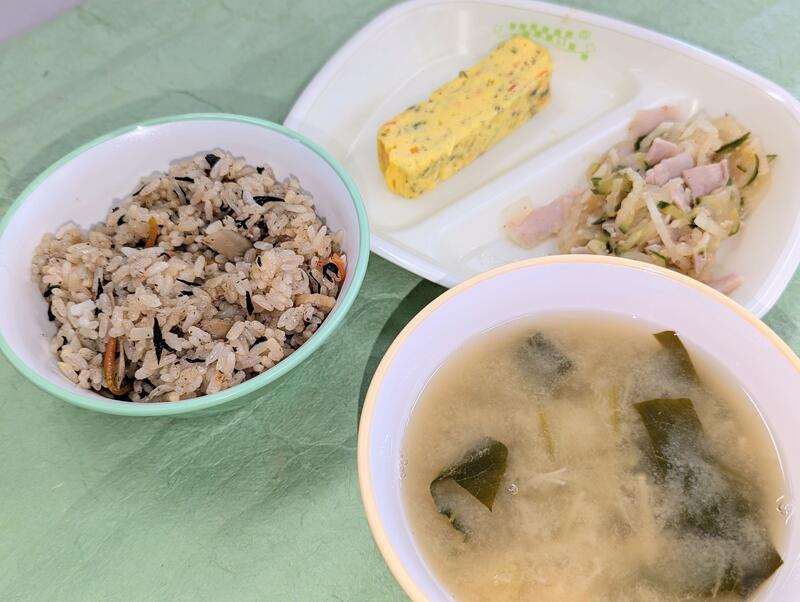 12月9日(火) 投稿日時 : 12/09 学校管理者 鳥五目おこわ(町産食材はもち米)、チンゲン菜とえのきのみそ汁、彩り厚焼き玉子、大根とハムのごまあえ(542kcal) 0 {{options.likeCount}} {{options.likeCount}}